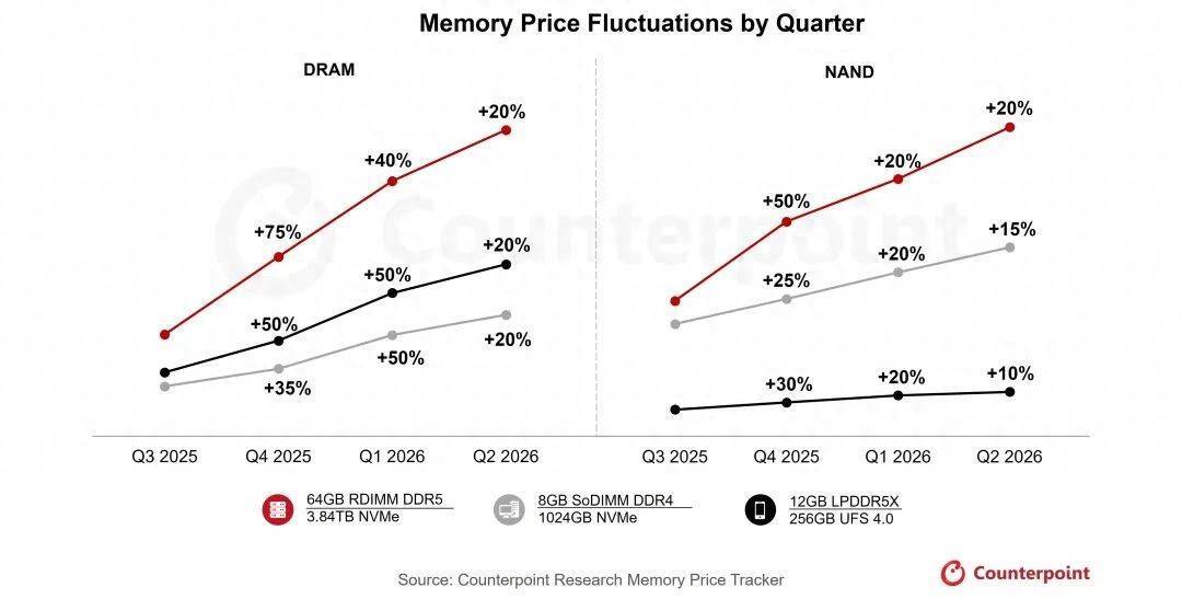 来源:Counterpoint Research 内存月度价格追踪牛领策略