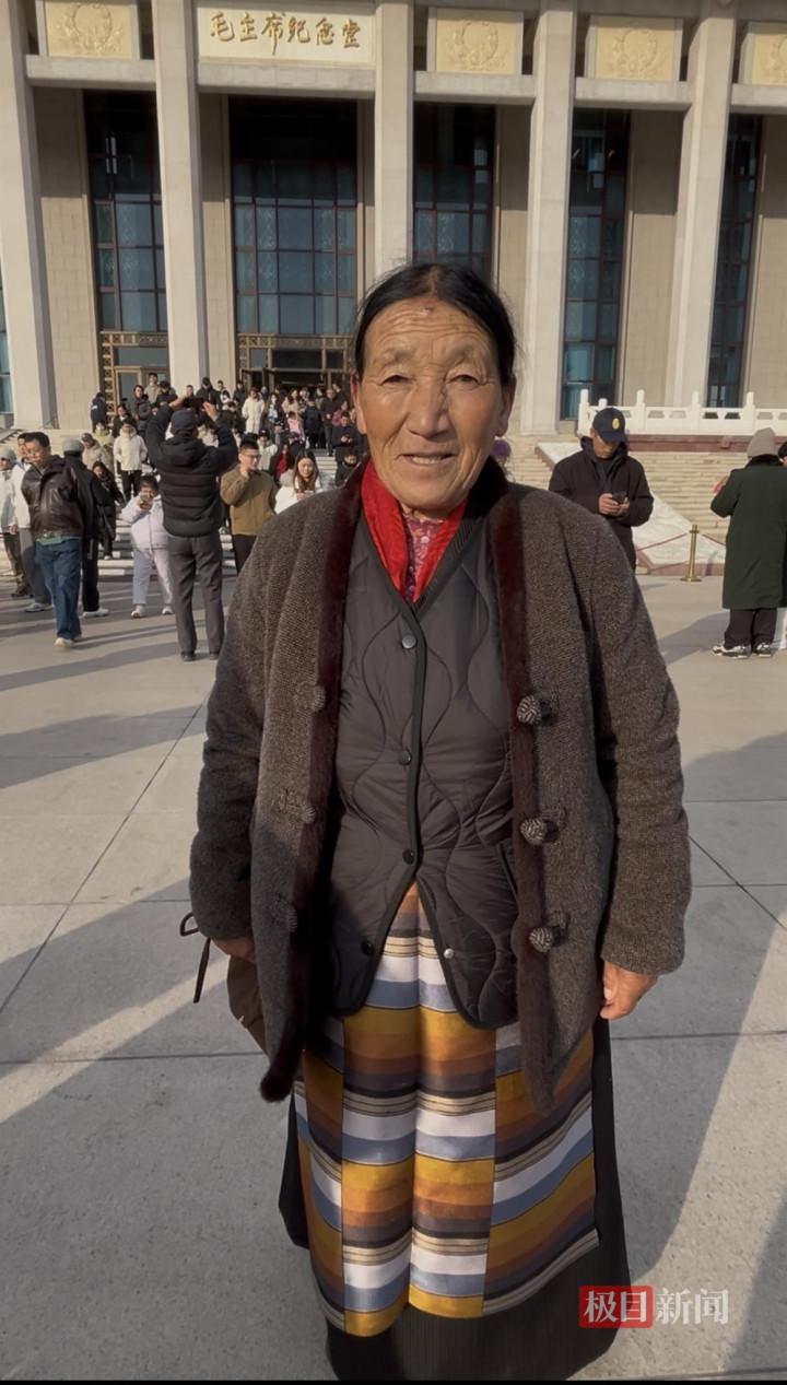 这名藏族游客的家人告诉极目新闻记者,他们来自西藏自治区山南市琼结县,这名阿姨名叫吉加,今年已经69岁。他们一家七口特意在毛主席诞辰这一天前来瞻仰参观。