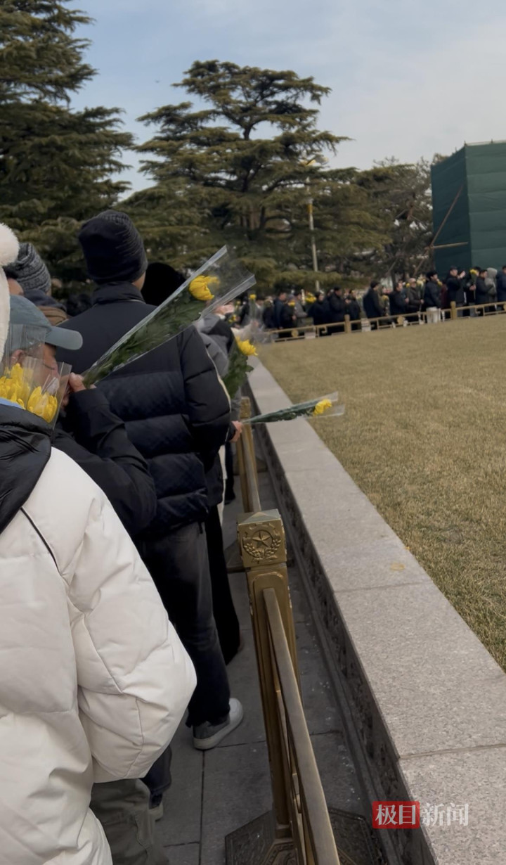 下午1时40分许一点钱程,极目新闻记者在毛主席纪念堂入口处看到,等候进入纪念堂的游客已经排起百米长队,有游客特意带了小红旗,还有不少游客专门又买了黄色菊花悼念。